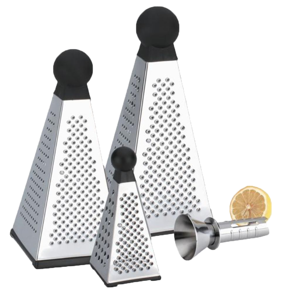 tower shape 18/0 stainless steel 4 way grater with PP knob & rubber feet frame